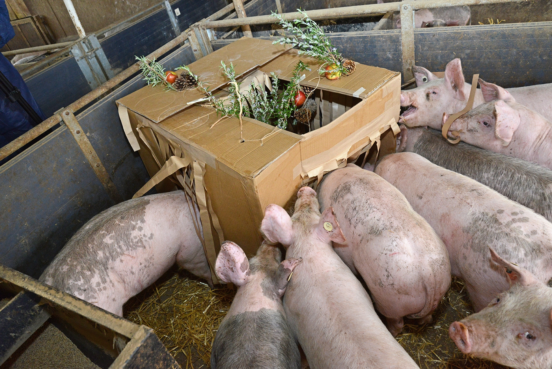This is part of CARNEVALE, a collaborative art-science project that explores animal welfare questions and the enthusiasm of pigs for investigative play. Click to see the rest.